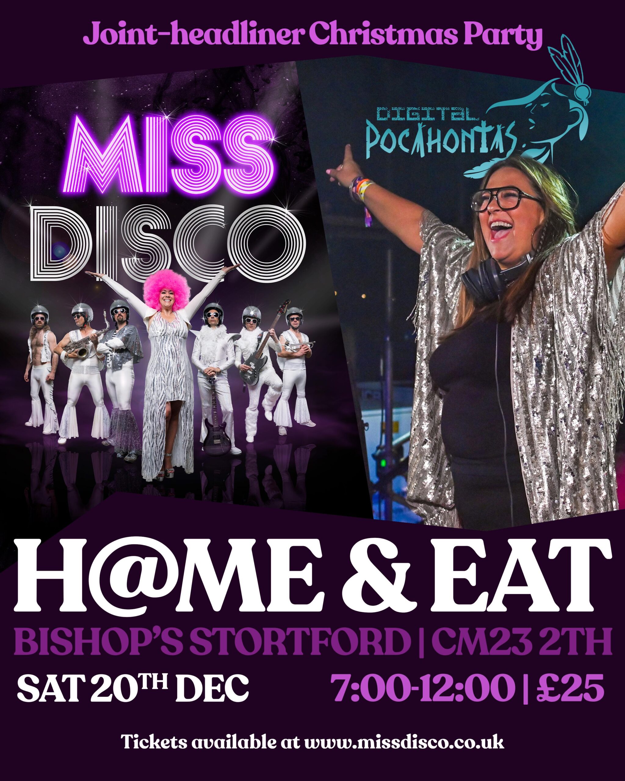 For the first time ever, Miss Disco and DJ Digital Pocahontas will play a joint-headline Christmas show at Home & Eat in Bishop’s Stortford on Saturday 20th December to get the festive season well and truly started.